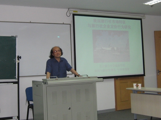 2007年6月20日晚七点,管理与经济学院“大家之约”大型学术活动在国际交流大厦708举行。这次学术活动由管理与经济学院研究生会承办,此次报告邀请到了北京联合大学旅游学院宁泽群教授,报告的主题为:我国旅行社市场特征与旅行社定价行为研究。