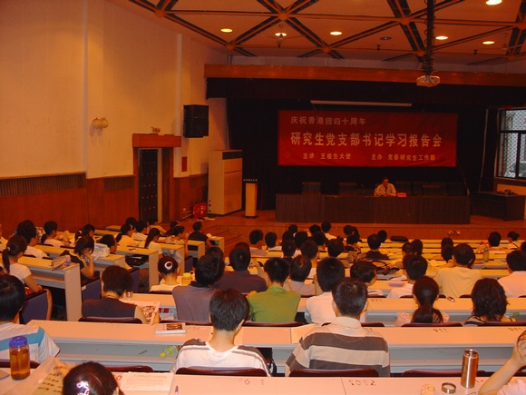 为庆祝七一建党86周年与香港回归10周年,党委研究生工作部邀请原外交部港澳事务办公室主任、中英联合联络小组中方首席代表王桂生大使来我校作《中英关于香港问题的谈判》的报告。6月27日晚,在七号教学楼报告厅王大使的报告会如期举行。出席报告会的有研究生院常务副院长吕昕老师、党委研究生工作部部长肖文英老师、副部长魏名山老师,全校研究生党支部书记以及对香港历史与发展感兴趣的同学。