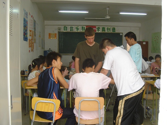 接着,老师带我们参观了校园。学校很简陋,但是学生都很认真的在听课,课堂气氛很活跃。同时我们也发现有几位外国人在给学生讲课。一问才知道,原来有很多外国友人也来学校义务教学,他们热情,活跃,与学生积极活动。接着我们还参观了他们的图书馆,宿舍。