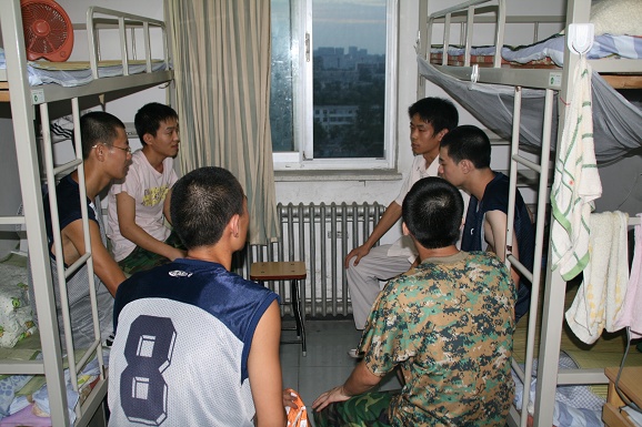 7月18日晚上,学院本科生第一党支部书记陈宇老师和05级学生党员,来到了06级同学的宿舍和广大大一同学进行了面对面的交流,了解他们对于军训的担忧和想法,并针对同学们提出的问题逐一进行解释回答。