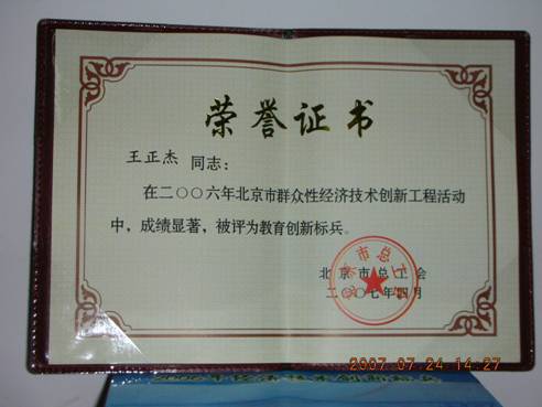 宇航学院青年教师王正杰副教授在2006年教学工作中,热爱党的教育事业,兢兢业业、勤奋好学,先后获得ob真人竞猜青年教师基本功一等奖,并代表ob真人竞猜参加北京市高校青年教师基本功理工类组比赛又获得一等奖。王正杰副教授的出色表现被北京市总工会评为教育创新标兵。