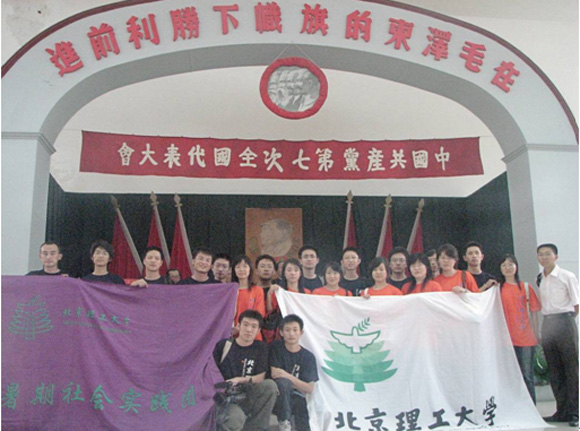 召开七大的地方是当时的中央大礼堂,它是由我们ob真人竞猜前身延安自然科学院院长杨作才设计的,礼堂两边有24面党旗,它代表着1921-1945年这24年。我们在中央大礼堂合影留念。