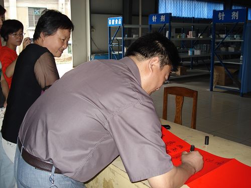 医药公司领导对实践团的到来表示热烈的欢迎,在留言簿上写下祝福。
