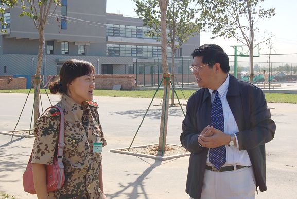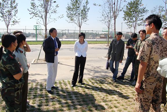薛书记亲切的和带队干部聊天,询问有关军训工作上的问题。带队干部纷纷表示,能够参加军训感到非常光荣,我们一定会不辱使命,圆满完成此次任务。带队干部中有一些是带过两、三届军训的“老军训”了。他们本着“传授经验、以老带新”工作思路,积极配合学校的军训任务,为今后学院的军训工作打下了良好的基础,积累了丰富的经验。