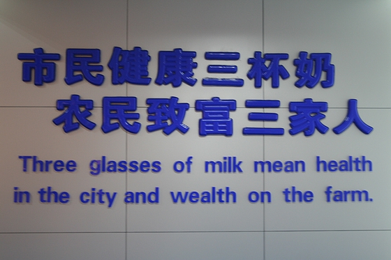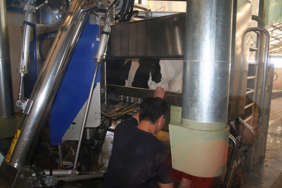 参观了生产车间后,我们来到了蒙牛澳亚国际示范牧场,这一牧场位于呼和浩特市和林格尔县,占地面积8848亩,饲养规模为万头奶牛,是目前我国最具规模效益的示范牧场。旋转挤奶,在大厅中放着优美的音乐,让奶牛能快乐的挤奶。