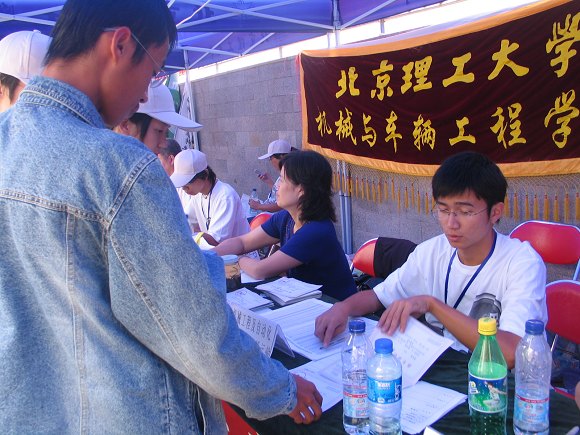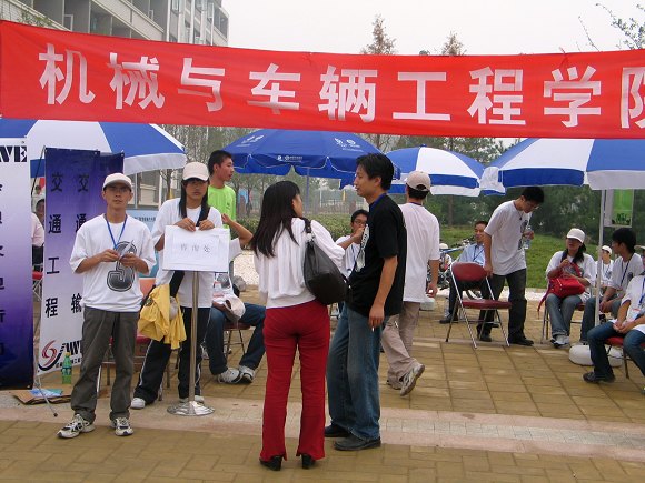 寓意收获的九月,300多名学子踏进ob真人竞猜的校门,成为机械与车辆工程学院的一名新生,成功迈出了人生历程中的重要一步。为了让新同学能真切地感受到学校的关怀,师长的关爱,在学院领导的悉心关怀指导下,学院ob真人竞猜组认真做好了迎新的各项准备工作,在良乡校区设立迎新站,热情地迎接2007级新同学。