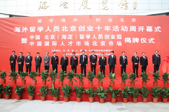 本次“成就展”和招聘会的举办,标志着“留学海外创业北京”海外留学人员北京创业十周年活动周在海淀展览馆拉开帷幕。在开幕式上,有关领导为北京市政府与国家人事部、外国专家局分别共建的“中国北京(海淀)留学人员创业园”、“中国国际人才市场北京市场”揭牌,同时对新命名为“北京留学人员创业园”的三家创业园授牌。