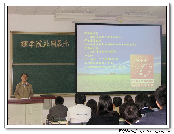 2007年10月13日早上7点,当秋日的北京还沉浸在睡梦中时,理学院五大社团——马列主义学习会、《博约》杂志社、科学技术协会、青年志愿者协会、学生会全体部长齐聚南门,面带着微笑,怀揣着希望,踏上了良乡校区社团风采展示暨招新的征程。