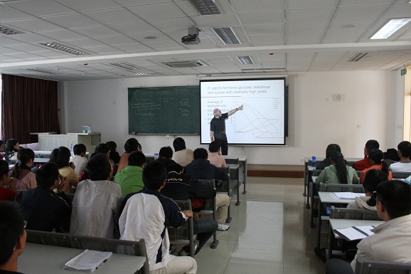 Thomas W Jeffries教授多年来致力于研究发酵学、发酵动力学,并对木糖发酵有很深的研究。本次讲座主要涉及了木糖发酵中的生理机制以及基因变化。讲座的内容新颖、丰富,吸引了在场的所有师生。