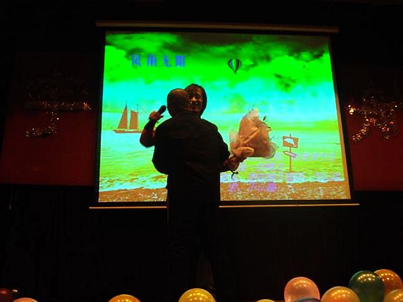 但是,有这么的一些人,我们见到的只是他们忙碌的身影。我们要感谢他们,给我们组织了这么精彩的演出;我们会默默祈祷,宇航永远好运!