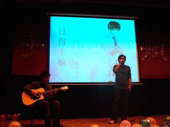 十月二十号十四时,七号楼报告厅,热烈的掌声和欢呼声,随风飘扬的音符……此时此刻,深受同学们喜爱的深秋歌会拉开了序幕。
