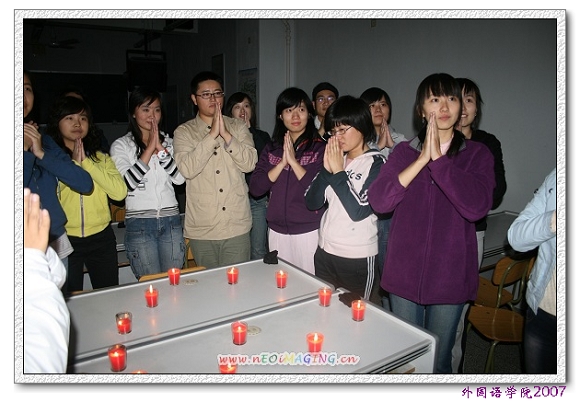 在压轴项目“感恩的心”中,同学们两人一组,一个蒙上眼睛,另一热负责搀扶自己的伙伴,在不能说话的前提下带领对方越过一道道障碍。每一对互相搀扶,上下台阶、穿过花丛、走“平衡木”、扶砖上墙,越过各种各样的障碍。“盲人们”只能信赖自己的伙伴,在伙伴的带领下度过一道道难关,大家相拥相守,相知相爱,共同去感受团队合作的魅力。最后,当同学们互相搀扶着走进障碍的终点,解开蒙布时,摆成心型的蜡烛发出柔和温暖的烛光,伴着“感恩的心”的旋律,同学们跟着老师默默地感恩,感谢彼此的帮助,感谢互相的信任,许多人流下了感动的泪水,培训活动也在达到了高潮同时圆满落下了帷幕。