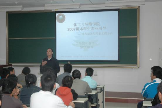 2007年10月9日,化工与环境学院2007级本科生专业引导工作正式开始。新生专业引导与迎新教育期间的专业教育共同组成了我院的“新生导师制” ,它也作为我院长期应对良乡校区新生专业知识引导欠缺的一种有效实施办法,通过不断灌输给新生以正确的专业思想和专业意识,希望能够及时化解新生的专业困惑,强化新生的学习意识。