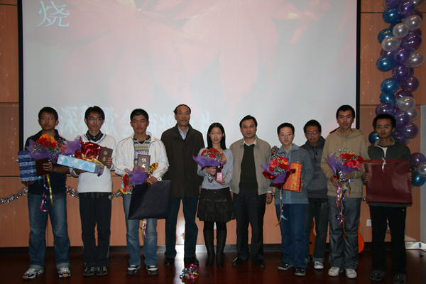 歌曲串烧唱响音乐高潮,学院本次深秋歌会中关村校区和良乡校区的冠亚季军一一登台亮相,随后,王树武书记和陈旵明副书记副院长为获奖选手颁奖。
