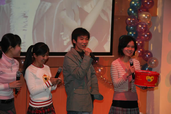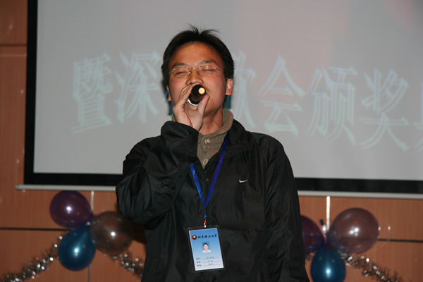 在大家的强烈要求下,07级辅导员高强老师亲自登台表演,为大家深情演唱。