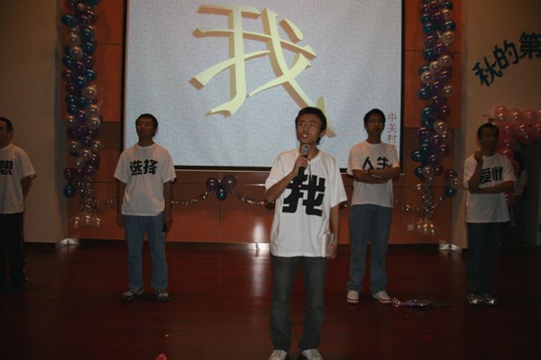 音乐过后,我院06级学生自编自导的话剧《我》闪亮登场,该剧内容深刻语言幽默,赢得阵阵热烈掌声。