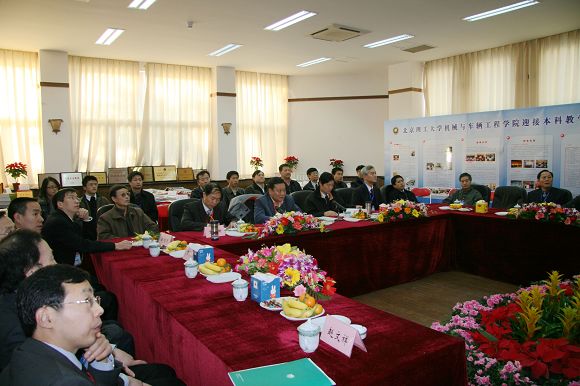 2007年11月16日上午八点半,教育部评估专家张湘伟教授、曾志新教授、袁军堂教授莅临机械与车辆工程学院检查指导本科教学工作,相关部处人员陪同检查。院长项昌乐作学院本科教学工作汇报。学院领导班子成员、本科专业建设责任教授、部分系(部、中心)主任和党支部书记、北京市教学名师及学生代表参加了汇报会。
