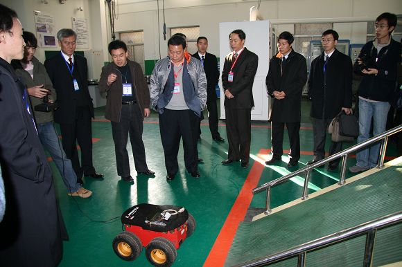 评估专家张湘伟教授、曾志新教授、袁军堂教授参观学院智能车辆实验平台