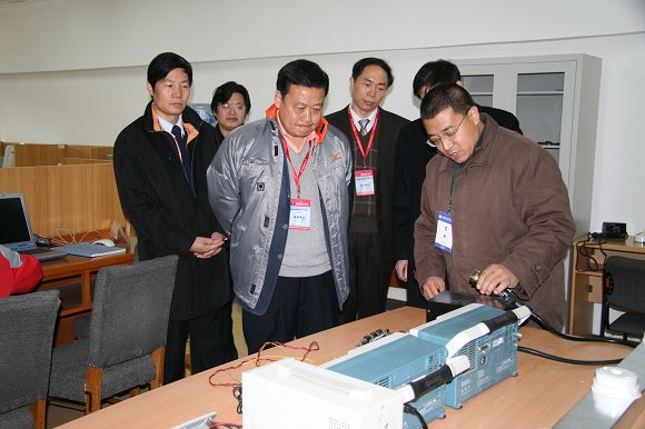 评估专家张湘伟教授、曾志新教授、袁军堂教授检查学院交通运输工程实验室