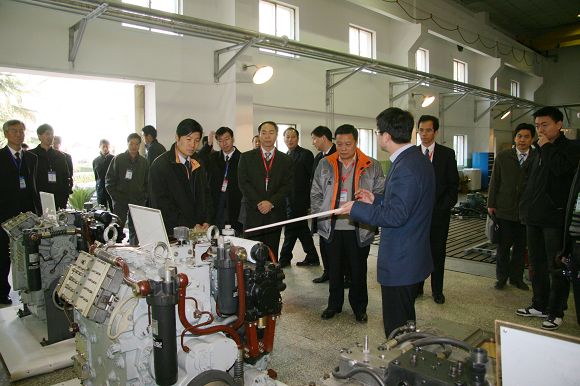 评估专家张湘伟教授、曾志新教授、袁军堂教授检查学院发动机实验室