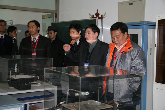 评估专家张湘伟教授、曾志新教授、袁军堂教授检查学院机械制造实验中心