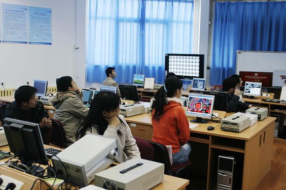 最后专家来到位于信息楼的光电教学实验中心并对教学工作进行了认真的检查,中心负责人芦汉生教授进行了介绍,在该中心专家依次参观了光纤技术实验室、光电仪器电子学实验室、激光技术实验室和光电创新教育基地。