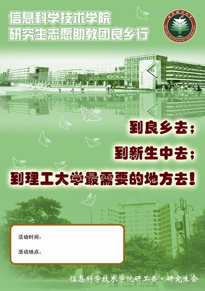 从11月1日起,学院研工委、研究生会在广大研究生中开展了赴良乡志愿助教团的宣传、推荐和选拔工作,并在学院2007级辅导员李恒老师、李姝璇老师的大力协助下,于11月13日下午组织第一批17名优秀的研究生代表赴良乡校区针对各个专业新生开展了专业教育。