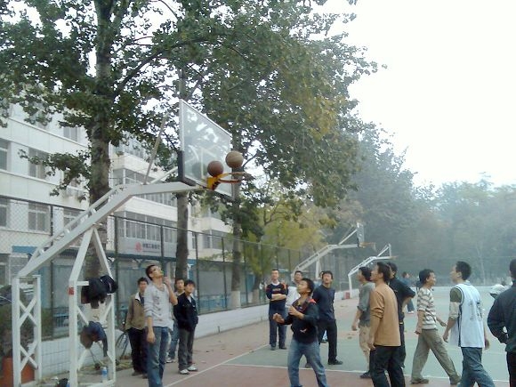 篮球每一次的升空,都牵动着赛场上每一个球员和场下所有观众的心。因此每一场比赛都是高潮迭起、精彩纷呈,赛后也同样是几家欢喜几家愁。但无论输赢,“赛场、篮球”把我们紧紧联系在一起,拉近了同学之间的距离,也达到我们比赛的最终目的。