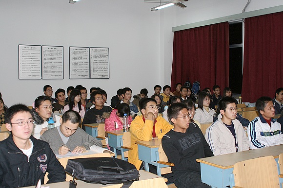 2007年11月23日晚七点,在一片深秋的浓郁暮景中一年一度的理学院学生社团干部培训如火如荼地展开。明理、精工、爱团、为学,理学院分团委周波、安泰、宋歌和卢俊峰四位老师在精心准备下,以独特的视角和真切的体验为新一届学生社团干部讲授了别开生面的培训课程,使大家团结成为一支能战斗、能吃苦、能奉献的学生干部队伍。
