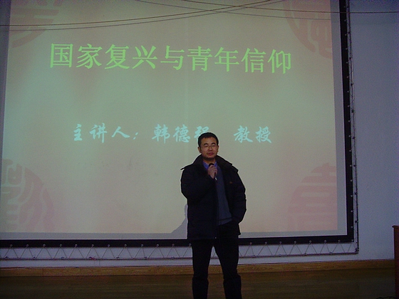 韩德强老师用独具一格的讲课方式为我们诠释了“中国复兴与青年信仰”的问题。
