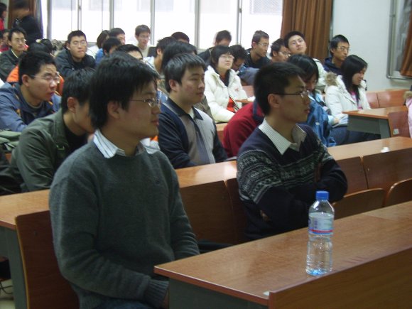 04级现已保研的肖战勇学长、保研北大的邓效诚学长们用机智幽默的语言,针对大家面临的许多问题进行了讲解,取得了很好的反响。