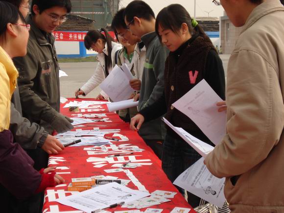 2007年12月1日是世界艾滋病日,绿风志愿者协会在良乡校区举行了“爱心,公益,平等,行动”大型签名活动。尽管当天天气情况不太好,但来询问和签名的同学仍然络驿不绝。