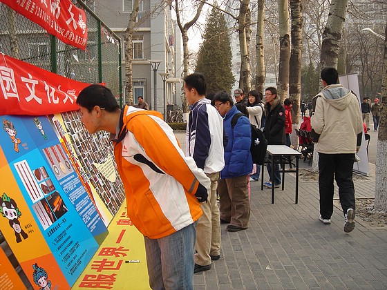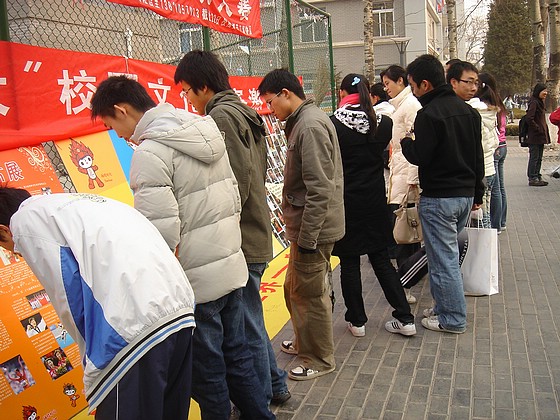 为展现新时代大学生的风采,展现大学生们对2008北京奥运的期待与向往的热情。2007年12月9日,管理与经济学院奥运系列图片展——主题为:“用微笑迎接奥运,用热情征服世界”的奥运微笑墙亮相新食堂对面。