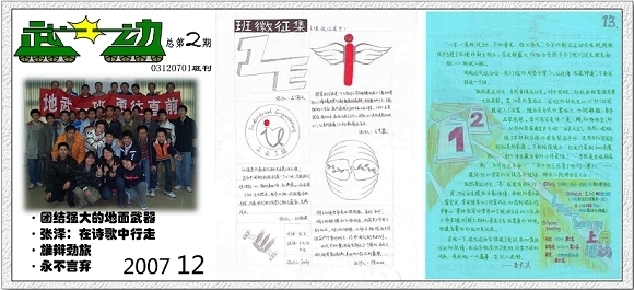 班刊,一个看似普通的字眼,在机械与车辆工程学院2007级同学的眼中却并不普通,它代表着班级全体同学智慧的融合和力量的凝聚。自从10月份以来,机械与车辆工程学院2007级各班积极响应学院号召,在良乡校区展开了一场“手绘班刊大比拼”,在增强班级凝聚力的同时,丰富了同学们的课余文化生活。