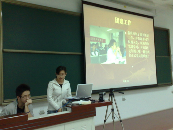 2007年12月26日,在良乡校区理科教学楼102教室,一场别开生面的干部述职大会隆重举行。软件学院2007级六个班的班长和团支书走上讲台,用PPT和演讲向大家讲述了自己一学期以来的工作历程和心得体会。