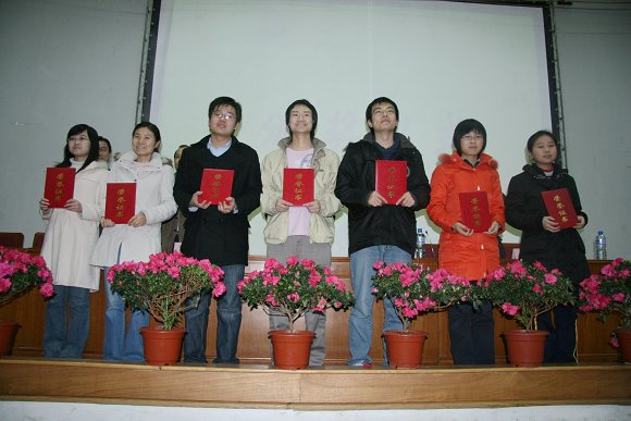 首先,由院长付梦印公布校级评优结果,付院长依次宣读了获得“国家奖学金”、“国家励志奖学金”、“优秀学生标兵称号”、“优秀学生干部”、“先进班集体”等奖项的个人和集体名单。