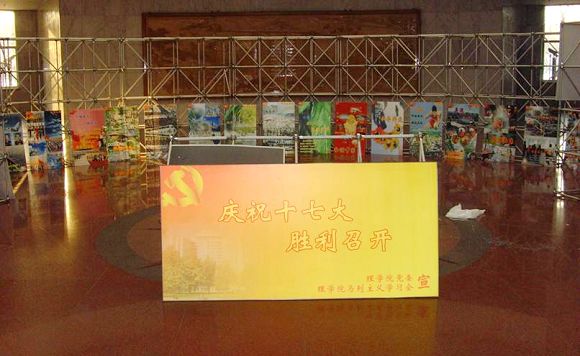 中国共产党第十七次全国代表大会的胜利召开是全国人民的一件大事,一件喜事。本着宣传十七大精神,引导同学们关注社会的主旨和出发点,理学院党委以十七大的胜利召开为契机,组织策划了这次图片展,并主要由理学院马列主义学习会的同学们负责各项具体工作。在整个准备过程中,马学会的同学们积极配合,制作了一幅幅鲜活的图片。