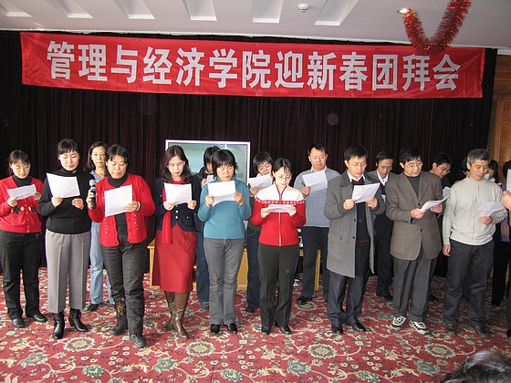 为使我院教职员工在辛勤工作一年之后,有一个轻松愉快、相互沟通、共享欢乐的机会,管理与经济学院党委、行政、工会于2008年1月13日举行了迎新春团拜会。