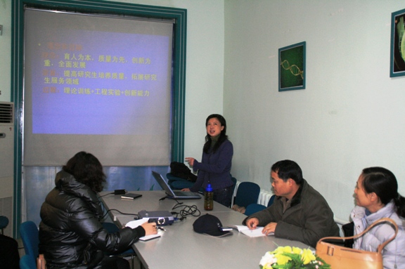 首先,我院主管研究生教学工作的唐晓英副院长,总结了我院几年来研究生招生和教学工作的基本情况以及现状,分析了工作中的优势与不足,以及所面临的问题。之后,学院负责研究生管理工作的教学干事陈亚娟老师,将研究生管理的具体要求、操作方法向老师做了详细讲解。
