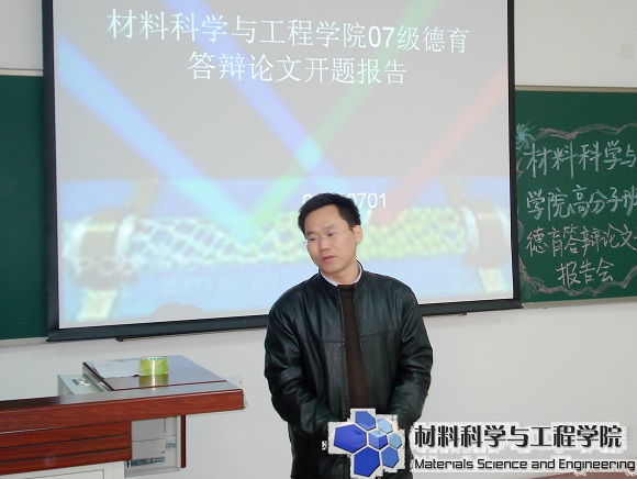 3月22日下午两点,材料学院07级高分子班德育答辩开题会在良乡校区综合教学楼B305教室举行,ob真人竞猜副校长李和章、07级高分子班班主任翟进贤、材料学院07级辅导员李紫千出席了开题会,高分子班全体学生参加了德育论文开题。