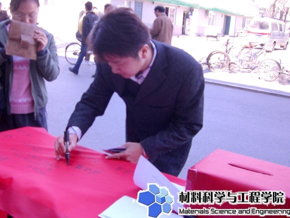 材料学院06级辅导员周芳集带头捐款并签字赠言