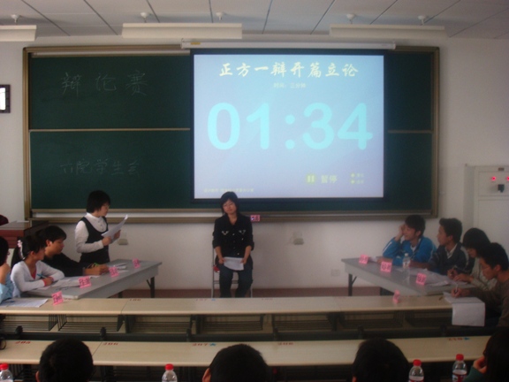 此次辩论赛共有八支报名参参赛队伍,每队采取自由报名,自由组队的形式参加,分预赛和决赛两个阶段进行。赛前组织者特意举办了辩论培训讲座,特邀校京工演讲团蔡毅同学为各队辩手进行培训,会上他对大家的问题一一作出解答,参赛选手们都认真做了记录,整个过程气氛融洽,大家对有关辩论赛的知识有了更进一步的了解。初赛分别以“青春偶像崇拜利大弊大”、“男性女性谁更需要关怀”、“读大学,长进最大的是知识还是人格”以及“大学生谈恋爱利大还是弊大”为辩题。整个过程中,选手们妙语连珠,表现出色,观众席上也不时传来喝彩声。每场比赛有观众提问环节,比赛结束评委也作出细致深入的点评并提出了改进的意见和建议。