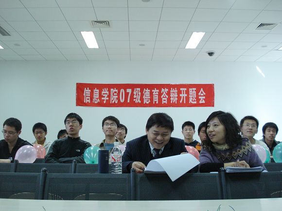 3月23日下午三点,信息科学技术学院2007级电子工程系信息对抗一班的“德育答辩论文开题会”在良乡校区理科教学楼209教室顺利召开。
