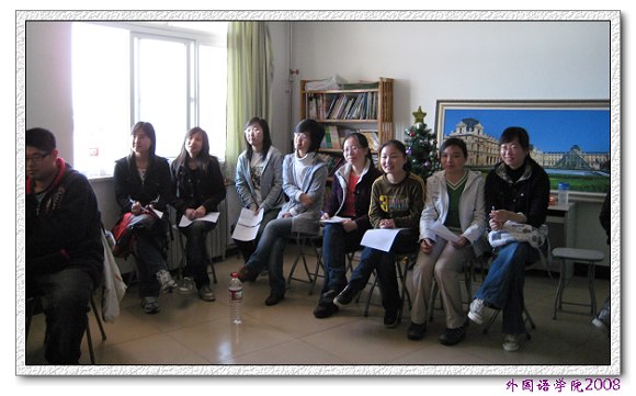 2008年3月23日,外国语学院2007级本科生德育开题答辩工作顺利启动,13110701班经过精心筹备,率先进行了班级的德育开题答辩会。外国语学院2007级辅导员张磊老师,班主任栗卓老师及来自中关村校区的高年级学长出席了开题答辩会,13110701班全体同学参加会议。