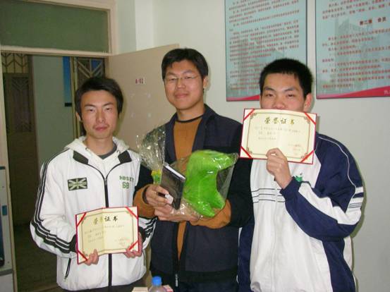 经过激烈的角逐,06过控1班郑大星、06过控1班杨金艳、06制药工程张建飞分别获得中国象棋组,跳棋组,和五子棋组的冠军。