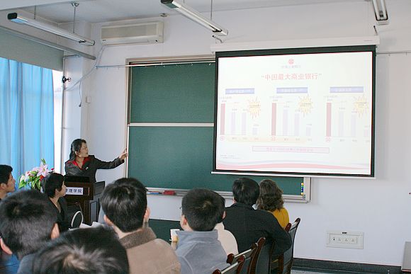 中国工商银行总行人力资源部主管向同学们介绍中国工商银行的情况,并介绍了此次招聘岗位的情况。
