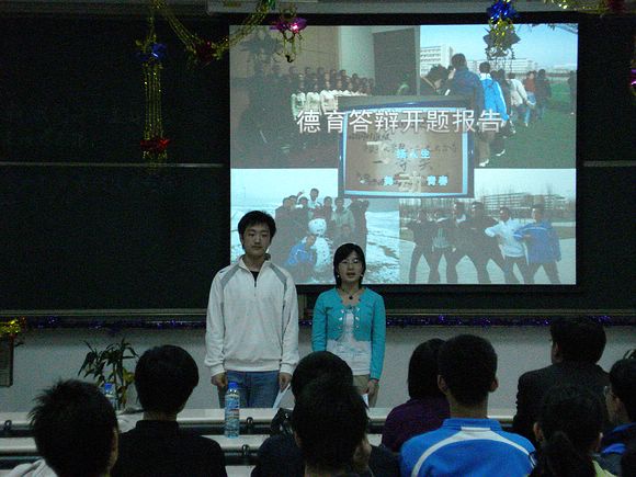 随着主持人开场介绍,报告会正式开始。同学们认真倾听,答辩会在和谐融洽的氛围中进行。