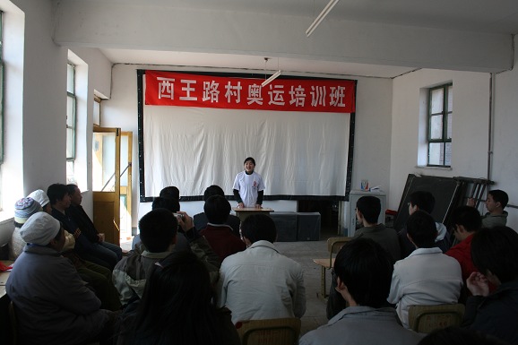 随后,党支部支部在村委会活动室举办了奥运知识讲座和简单英语会话的讲座,由支部党员邓超同学主讲,他从奥运会历史,奥运精神等几个角度向村民们做了介绍,村民们对讲座表现出极大的热情,并积极参与互动,整个活动在热烈和欢快的气氛中进行。