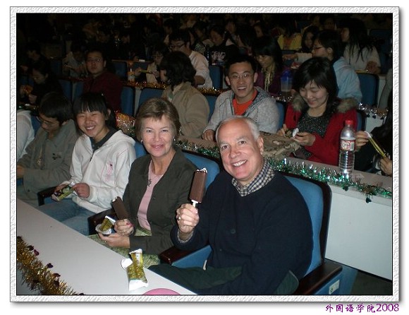 为配合这个主题,在放映电影前,外国语学院学生会还特别邀请到了英语外教Raisor夫妇。他们用纯正的英文向前来观看电影的观众讲述了他们二人甜蜜的爱情故事,并为大家简介影片出品方迪士尼公司的情况,使同学们在观看电影前提前进入情节做了充分的铺垫。
