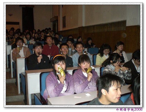 为引导同学们更深的感受语言的魅力,活动还针对外教的讲解和电影的剧情对现场的观众进行了提问,使同学们在放松身心的同时还能体会到外语的乐趣。